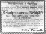 Im Jahre 1896 eröffnete der Schuhmachermeister Fritz Porzelt einen kleinen Laden, indem er Massschuhe anfertigte und Reparaturen ausführte. Dies war der Grundstein für das heutige Schuhfachgeschäft.1901 wurde das Geschäft in die Strau verlegt, wo es auch heute noch zu finden ist.